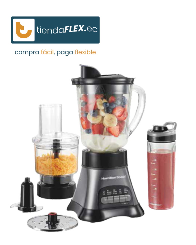 LICUADORA + PROCESADOR DE ALIMENTOS HAMILTON BEACH GRIS/NEGRA MOD 58163