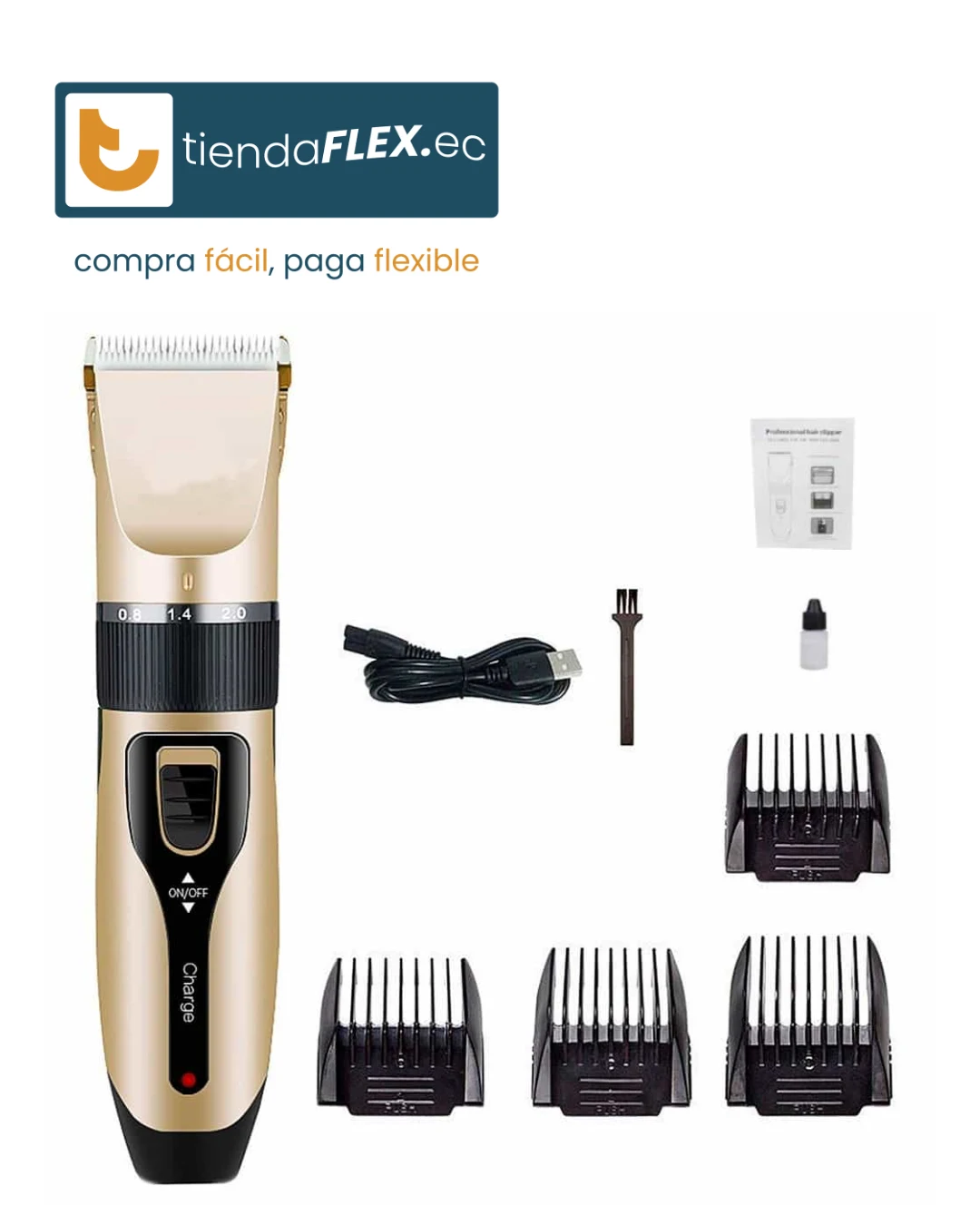 ✔️ Incluye: cortadora, 4 peines, cable USB y brocha de limpieza
