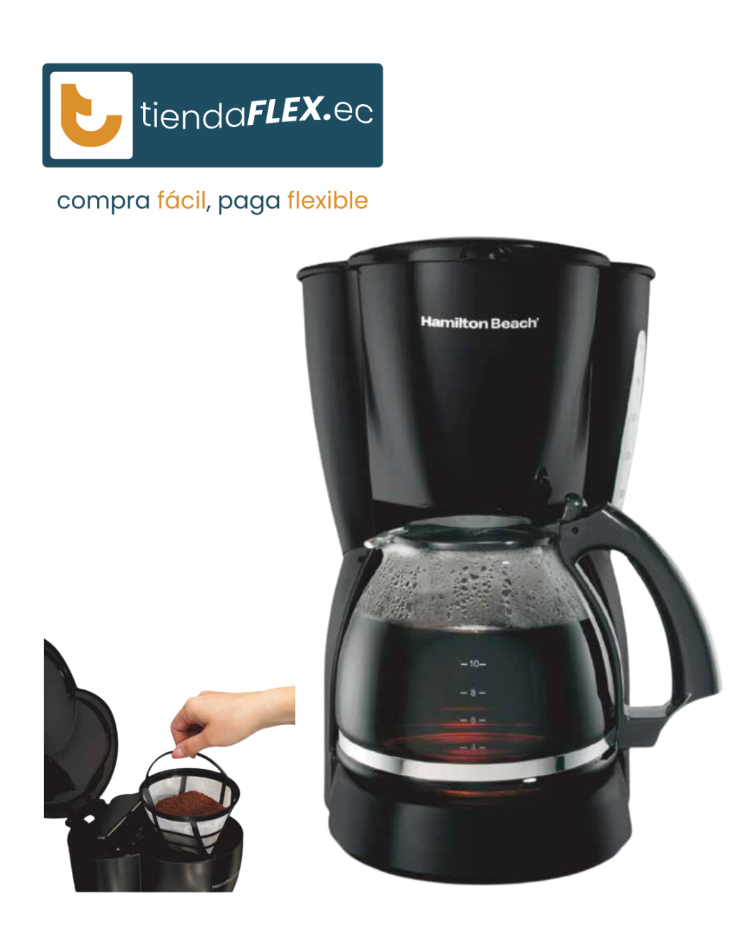 Esta cafetera Hamilton Beach ofrece preparación rápida para 12 tazas, filtro reutilizable y ventana de nivel de agua para un uso práctico y eficiente. Excelente para hogares y oficinas.