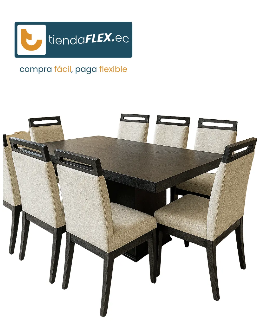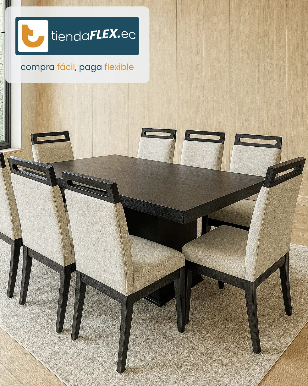 Luce tu hogar con el Comedor Bari, una pieza de gran presencia con acabados elegantes, perfecta para compartir momentos especiales con familia y amigos.