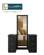 🪞 Con 6 cajones, repisa de vidrio y banco con baúl